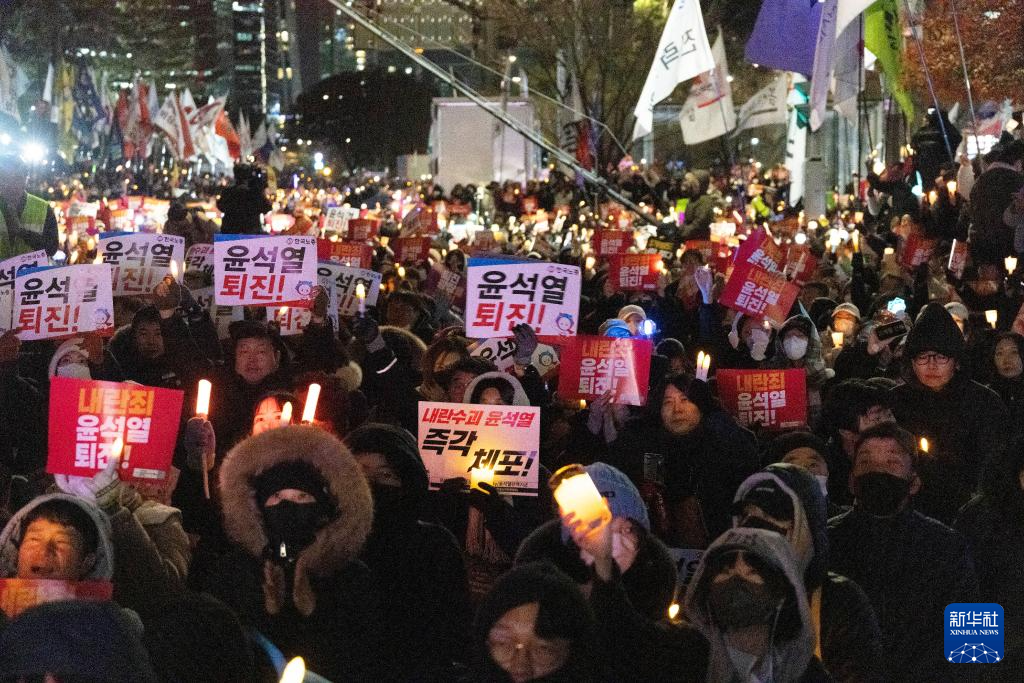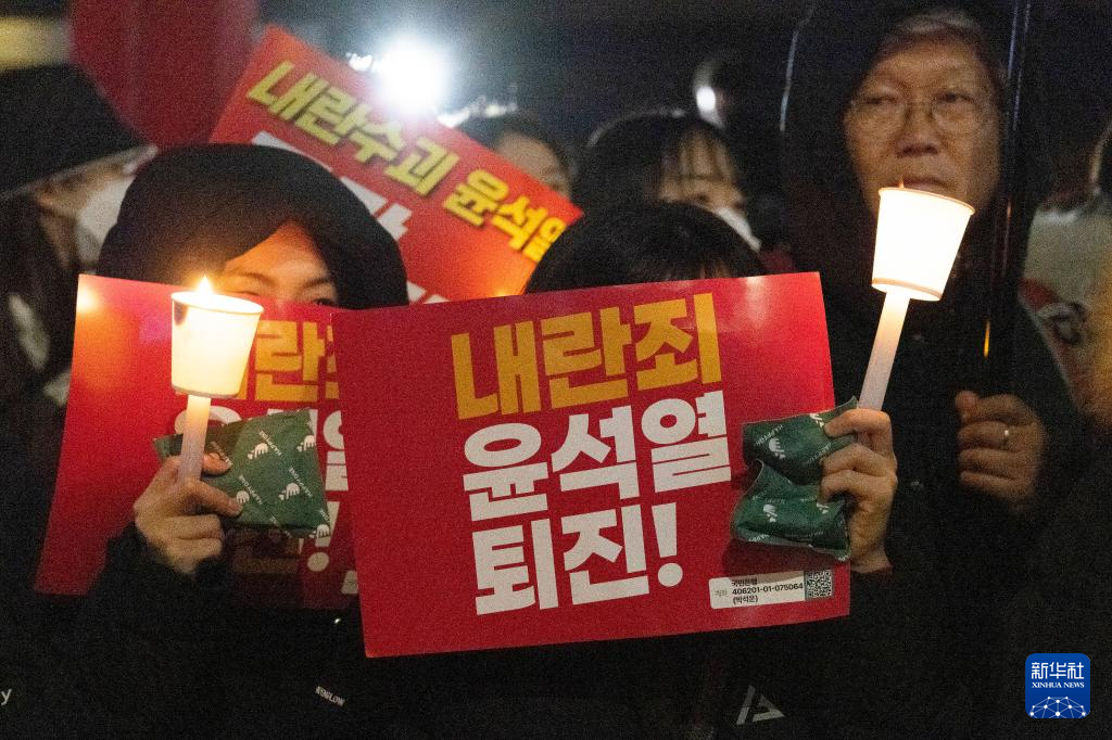 12月6日,韩国民众在位于首尔的韩国国会外集会要求总统尹锡悦下台。