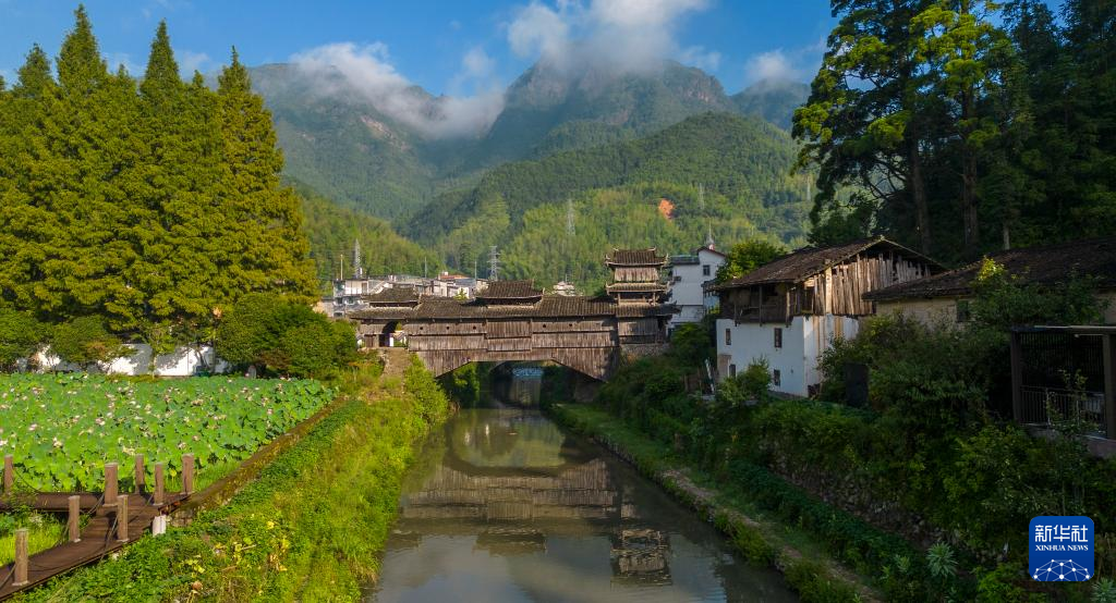 这是在浙江省丽水市庆元县拍摄的古廊桥如龙桥(2022年8月18日摄,无人机照片)。
