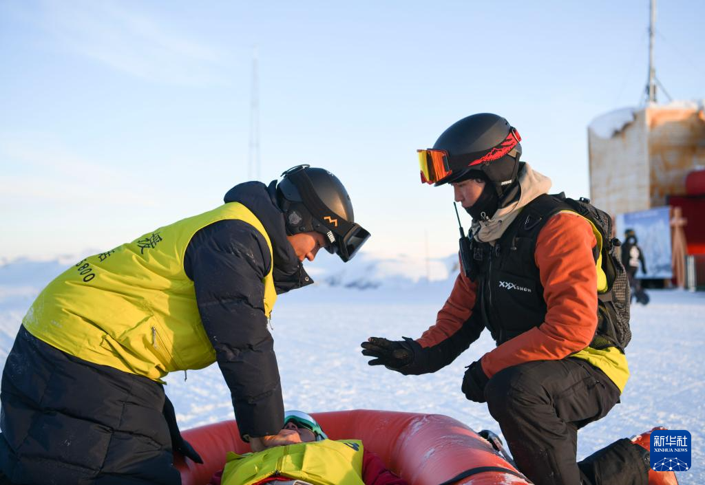 12月3日,在吉克普林国际滑雪度假区,一名雪友向满德力(左)反馈救援信息。