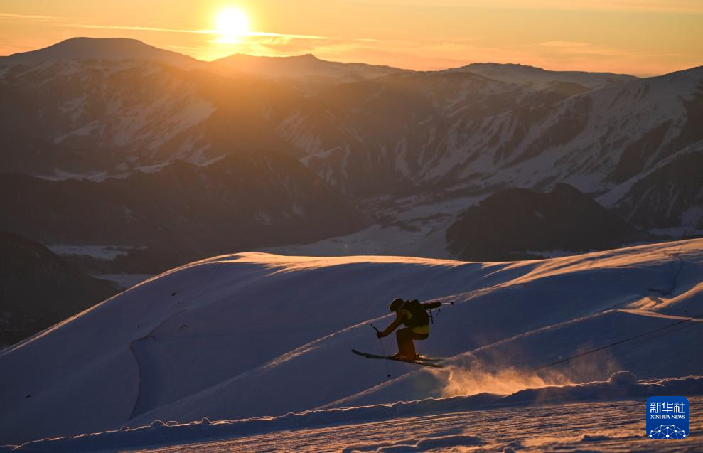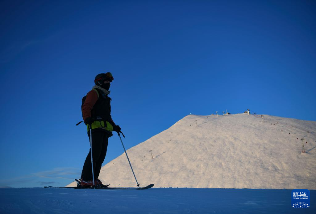 夕阳西下,满德力在吉克普林国际滑雪度假区巡逻(12月3日摄)。