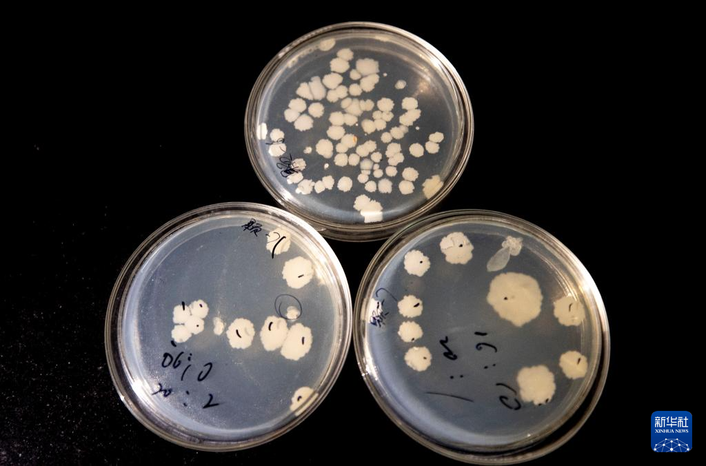 杨国平团队在抗盐碱微生物筛选实验中培养的微生物菌群器皿(12月6日摄)。