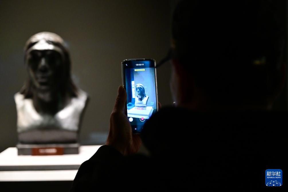 这是12月6日在位于安徽省池州市东至县的华龙洞遗址陈列馆拍摄的华龙洞6号头骨面貌复原像。