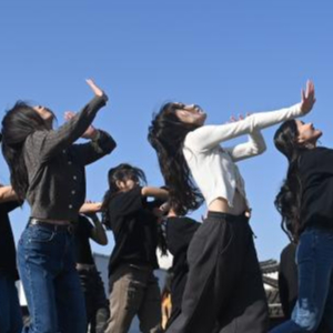 12月8日,大学生在南浔古镇古戏台前表演街舞。