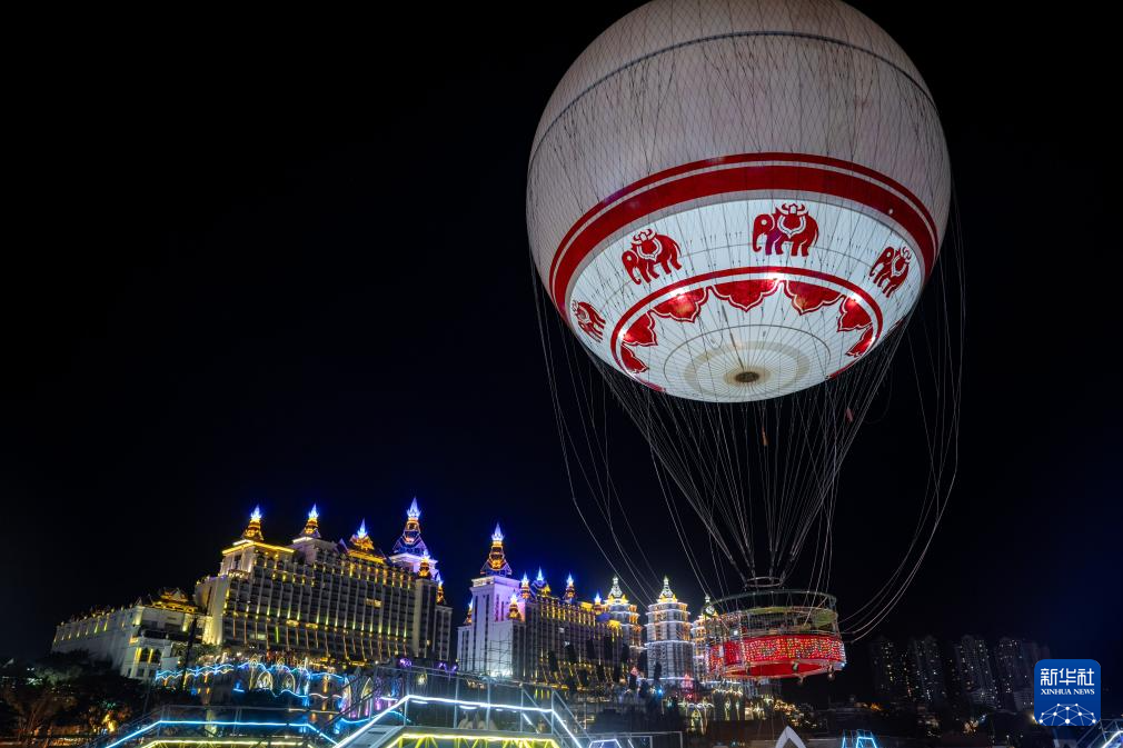 12月7日,游客在告庄西双景星光夜市体验观光气球。