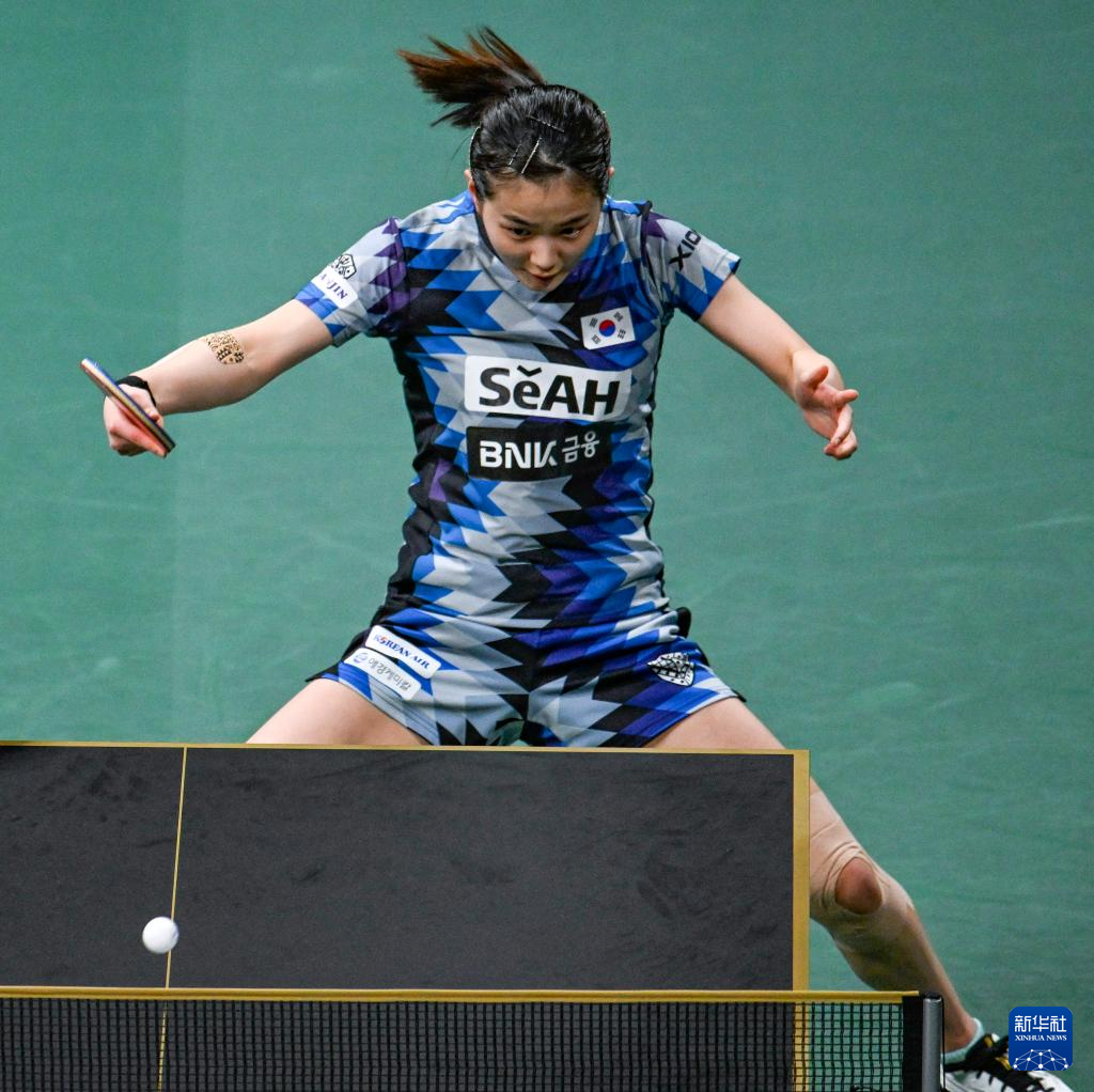 12月8日,韩国队选手金娜英在女单比赛中。最终,她0比3负于中国队选手王曼昱。