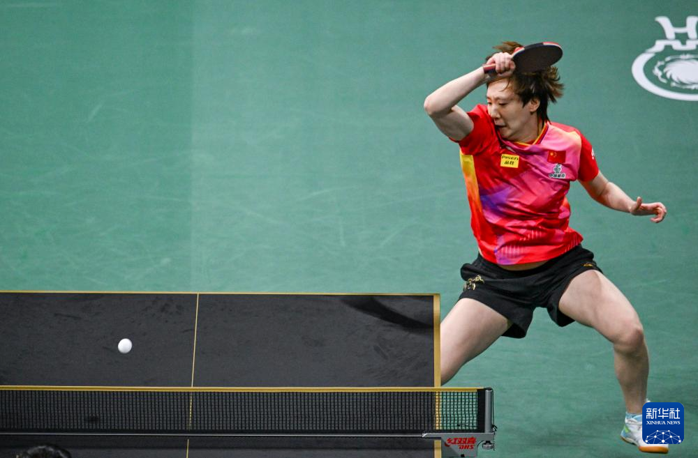 12月8日,中国队选手王曼昱在女单比赛中。最终,她3比0战胜韩国队选手金娜英。