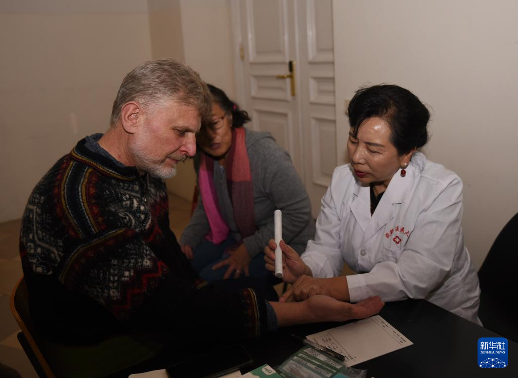 12月7日,在奥地利维也纳,成都中医药大学陈骥教授(右)为患者义诊。