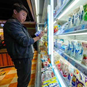 12月9日,顾客在贵州省贵阳市观山湖区一家生鲜超市选购乳制品。