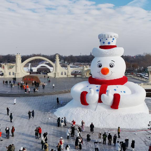12月8日,哈尔滨今冬第一个大雪人“雪人先生”在太阳岛风景区落成。大雪人高20米,用雪量4000立方米。