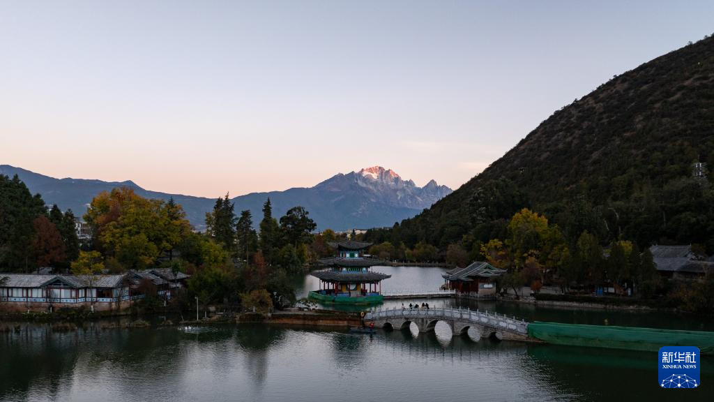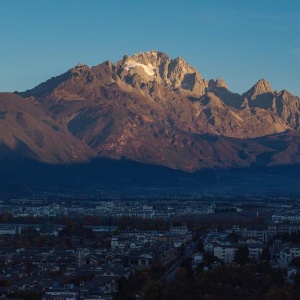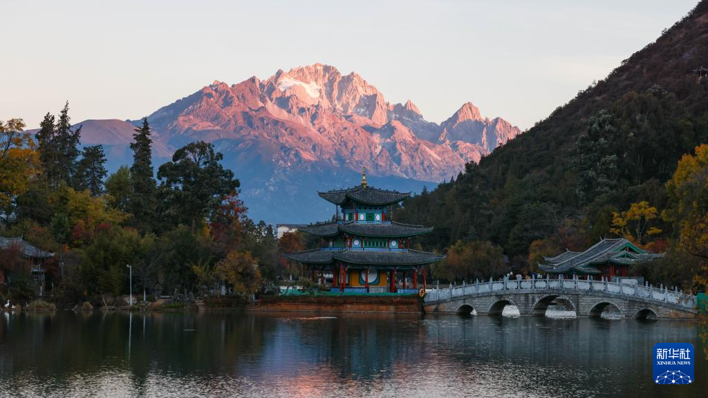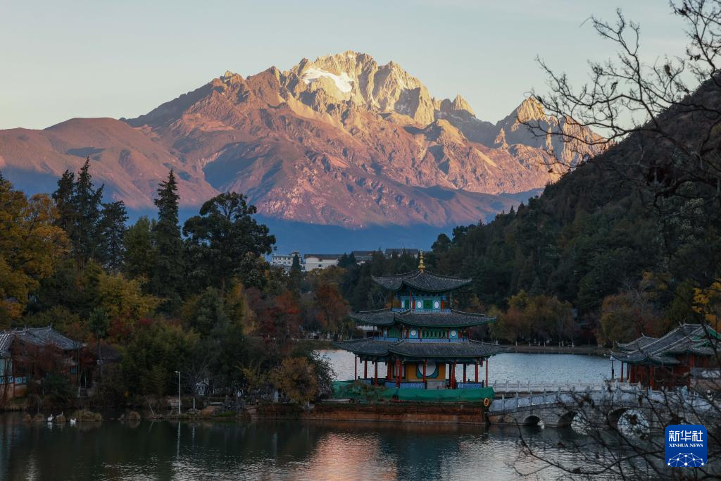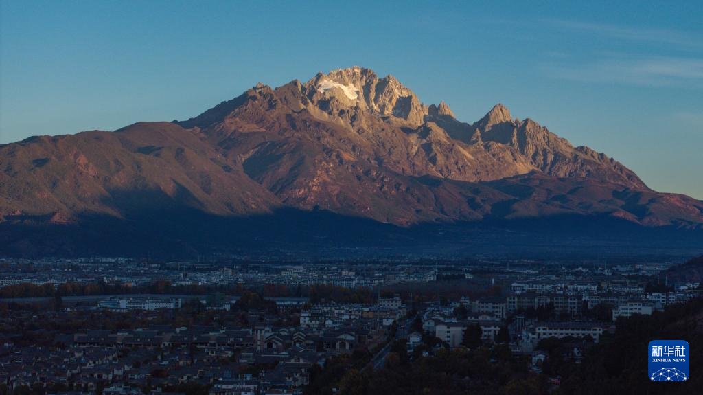 玉龙雪山位于云南省丽江市西北部,终年积雪,银装素裹。仲冬时节,随着旭日东升,晨辉渐渐洒满山巅,山下层林尽染,城市悄然苏醒,一幅和谐灵动的生态画卷徐徐展开。
