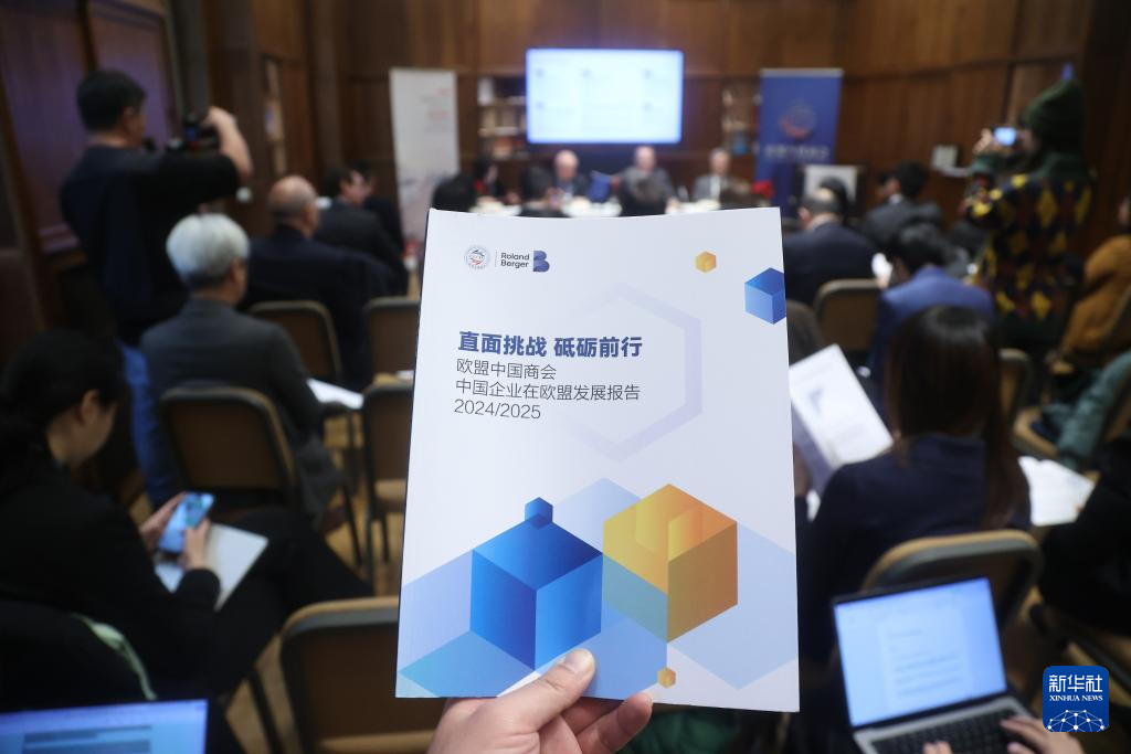 这是12月9日在比利时首都布鲁塞尔拍摄的欧盟中国商会与咨询公司罗兰贝格共同发布的2024至2025年度旗舰报告。