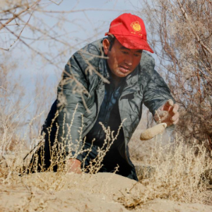2024年7月,甫甫克村召开大会,动员村民在后河坝承包沙地治沙。一开始,麦麦提和很多村民一样不敢轻易承包,但当地出台了多项政策支持激励,免去他们的后顾之忧。麦麦提主动承包了700亩沙地,计划种植红柳和大芸。