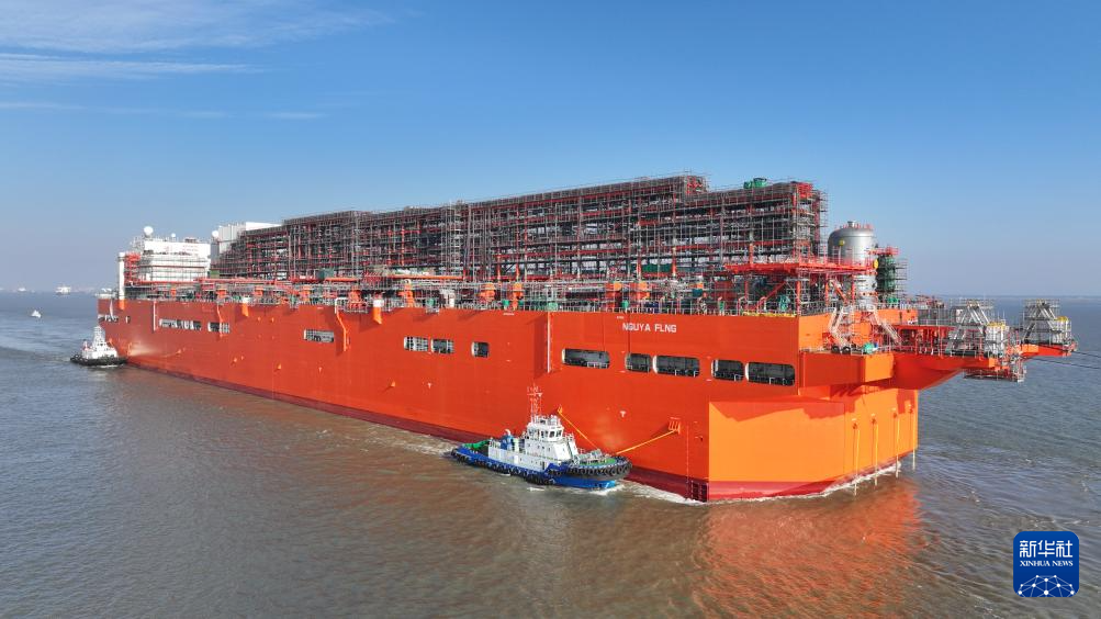 当日,我国首座大型浮式天然气液化装置“NGUYA FLNG”轮从江苏南通开发区顺利拖航出江,前往浙江舟山进行上部模块安装、集成和调试。据了解,浮式天然气液化装置(FLNG)能够在深远海直接将开采出的天然气液化并储存,是海洋工程装备中建造复杂、附加值大的一类产品。