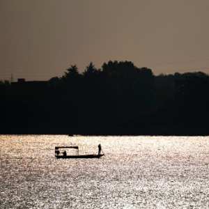 今年58岁的杨力是土生土长的丹江口人,在库区清漂已有7年多,现在是清漂队队长。天色微明之时,他就来到丹江口大坝上游的清漂船停泊码头,仔细检查船上的各项设备后,与三名队员分别驾驶两艘小船,驶入库区,开始清漂作业。
