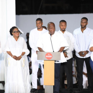 12月9日,在加纳首都阿克拉,马哈马(前)胜选后发表演讲。