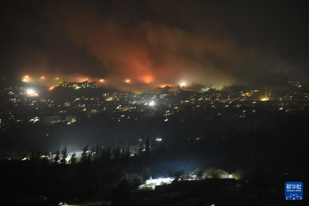 12月9日,叙利亚首都大马士革遭空袭后升起浓烟。
