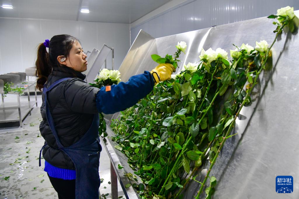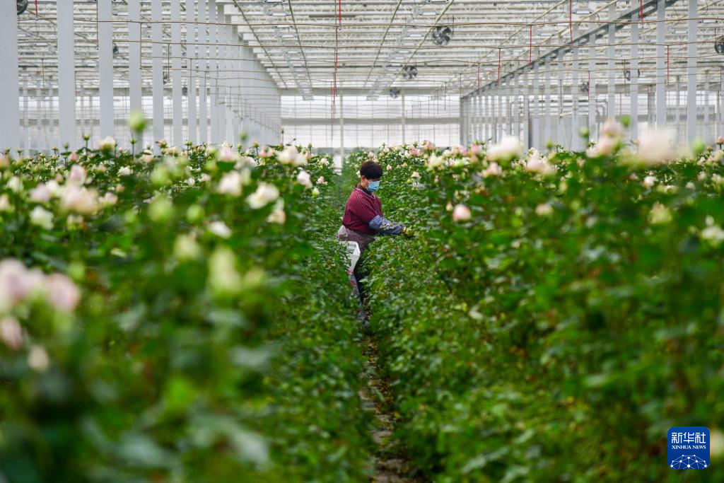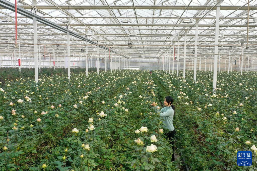 在山东省淄博市淄川区的大奎山花能互补示范项目智能温室内,12万株玫瑰正处于盛花期,工人们熟练地剪花、分拣,通过电商平台将鲜切玫瑰销往各地。这个智能温室借助闭坑矿井水资源冬暖夏凉的特性,开展矿井废弃热源综合利用,常年保持16摄氏度室温,为玫瑰营造了适宜的生长环境。