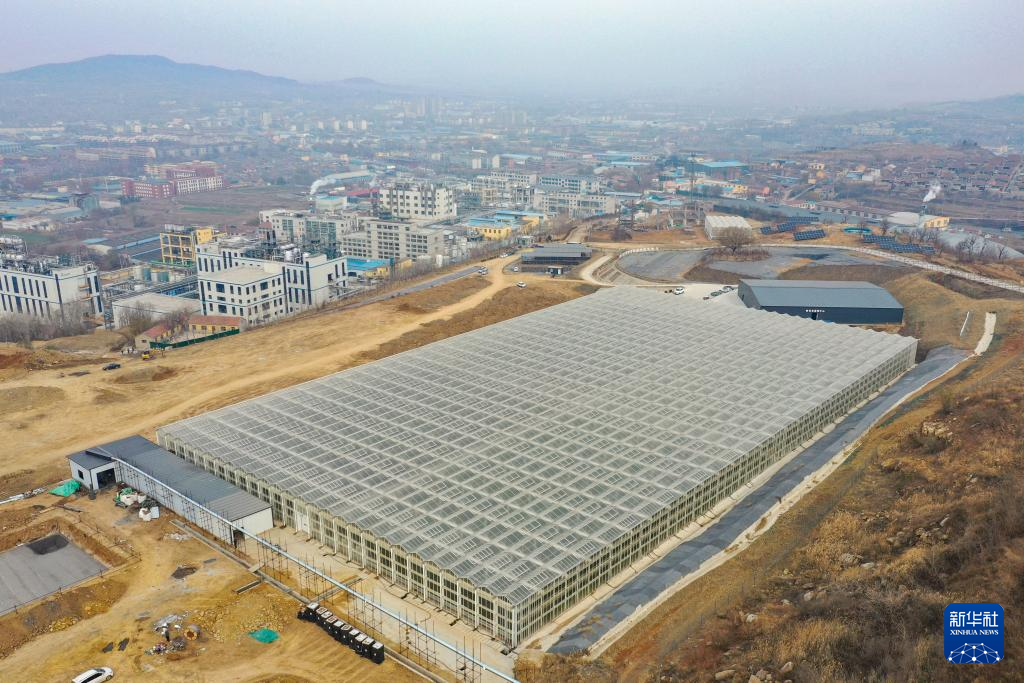 这是12月10日拍摄的大奎山花能互补示范项目智能温室(无人机照片)。
