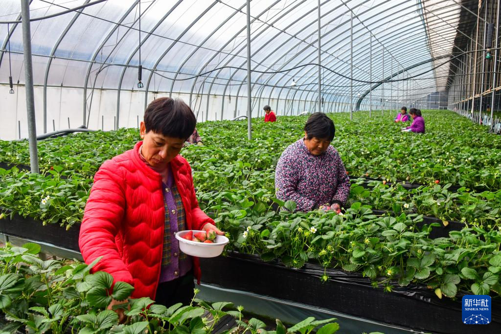 连日来,山东省沂源县西里镇欣苗村的冬暖大棚草莓批量上市。近年来,这个村以种植销售草莓为主营产业,采用无土栽培等新技术发展冬暖大棚草莓种植,帮助农民拓宽增收渠道。