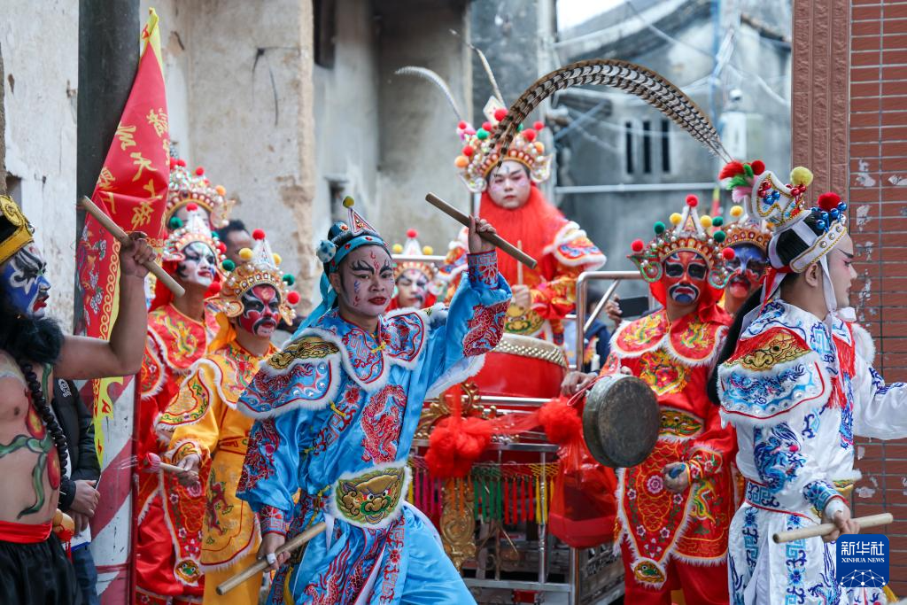 12月9日,庄恩琪穿上定制的服装在村里跳英歌。