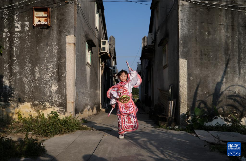12月9日,广东省汕头市潮阳区贵屿镇玉窖村举办民俗活动,5岁女童庄恩琪手持英歌槌,跟随鼓点节奏与当地的英歌队员一同起舞,动作有力且充满韵律,赢得了在场观众阵阵掌声。