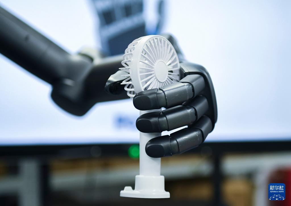 6月28日,在帕西尼感知科技(深圳)有限公司的实验室,人形机器人TORA-ONE展示抓握能力。