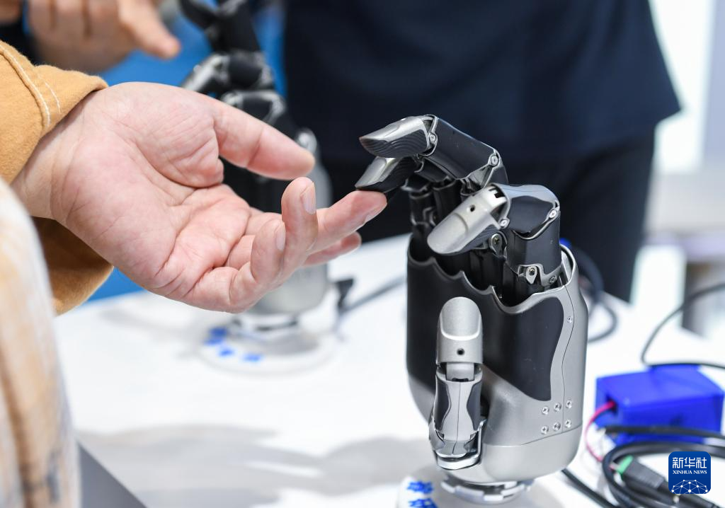 11月15日,在深圳举行的第二十六届中国国际高新技术成果交易会上,观众体验深圳睿研智能控制有限公司展示的一款灵巧手。