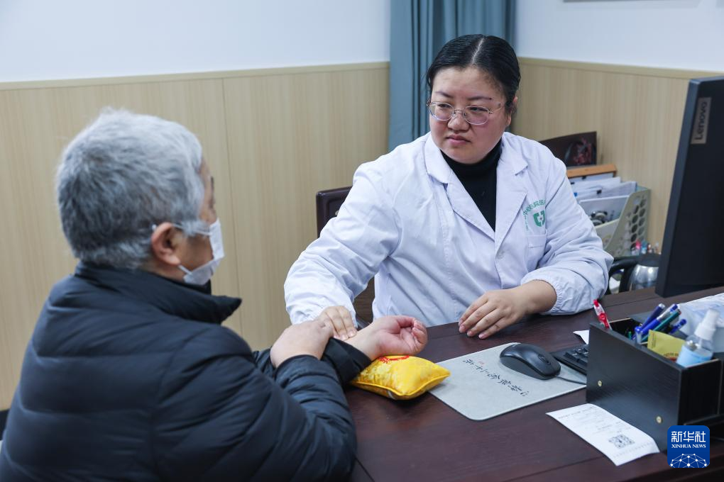 12月13日,在环渚龙泉街道社区卫生服务中心中医馆,医生在给老人进行中医诊疗。