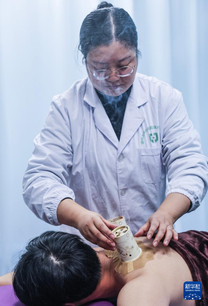 12月13日,在环渚龙泉街道社区卫生服务中心中医馆,医生为患者进行中医艾灸。