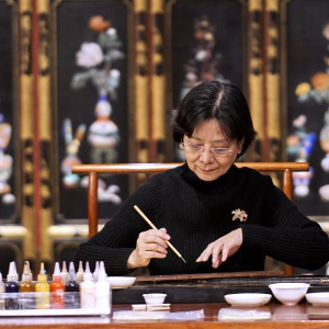 1957年出生的胡昕从事金漆镶嵌工艺已有48年,她潜心研究,在工艺技法和艺术风格上实现了新的突破,其创作的金漆镶嵌作品富丽华贵、庄重典雅、纹饰精美。2015年,胡昕所在的北京金漆镶嵌有限责任公司(原北京金漆镶嵌厂)与北京市工艺美术高级技工学校签订了“校企合作”协议,开办了金漆镶嵌专业定向班,建立了“金漆镶嵌人才培养实训基地”。胡昕作为客座教师,每周都会去现场授课,为企业培养新一代技术人才。