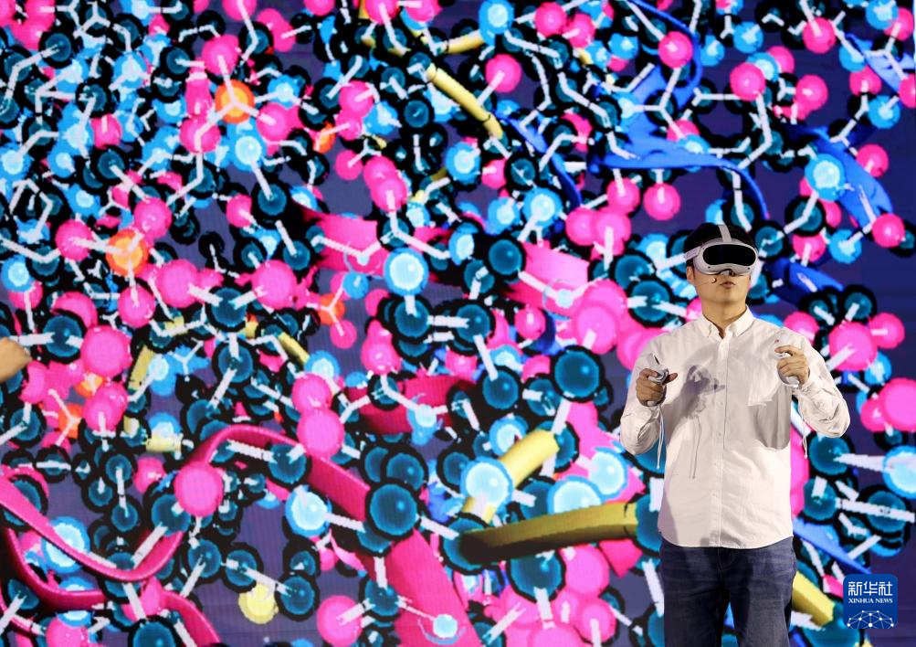 12月12日,在英国伦敦,一名男子参加智慧教育典型应用场景展示活动。