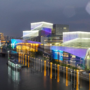 白鹅潭大湾区艺术中心位于广州市荔湾区白鹅潭,是集广东美术馆、广东省非物质文化遗产馆、广东文学馆于一体的重大标志性公共文化设施。据了解,大湾区艺术中心总建筑面积约14.5万平方米,展陈面积超4万平方米,共享公共区域3.5万平方米。