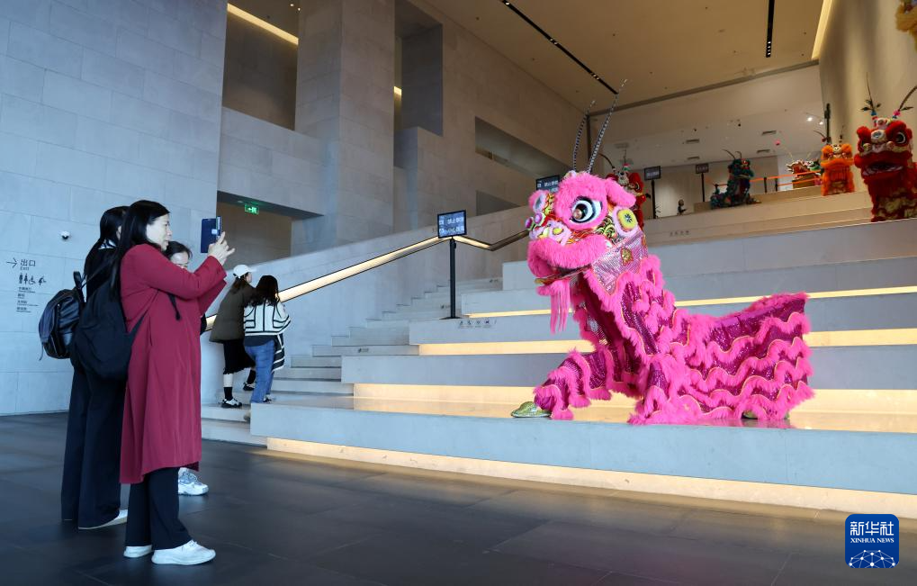 游客在广东省非物质文化遗产馆里参观、拍照(12月6日摄)。