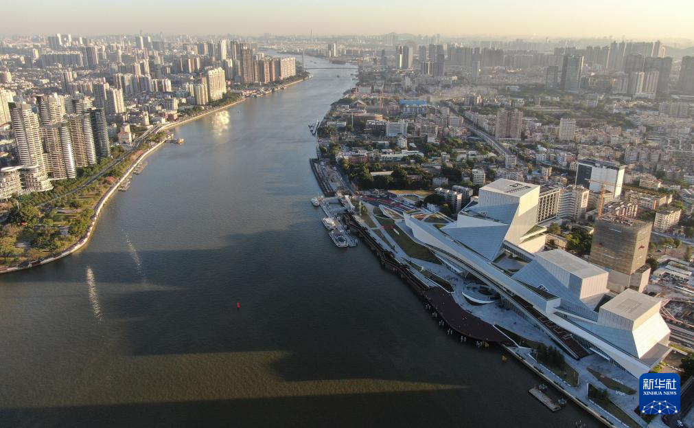 这是白鹅潭大湾区艺术中心(11月29日摄,无人机照片)。
