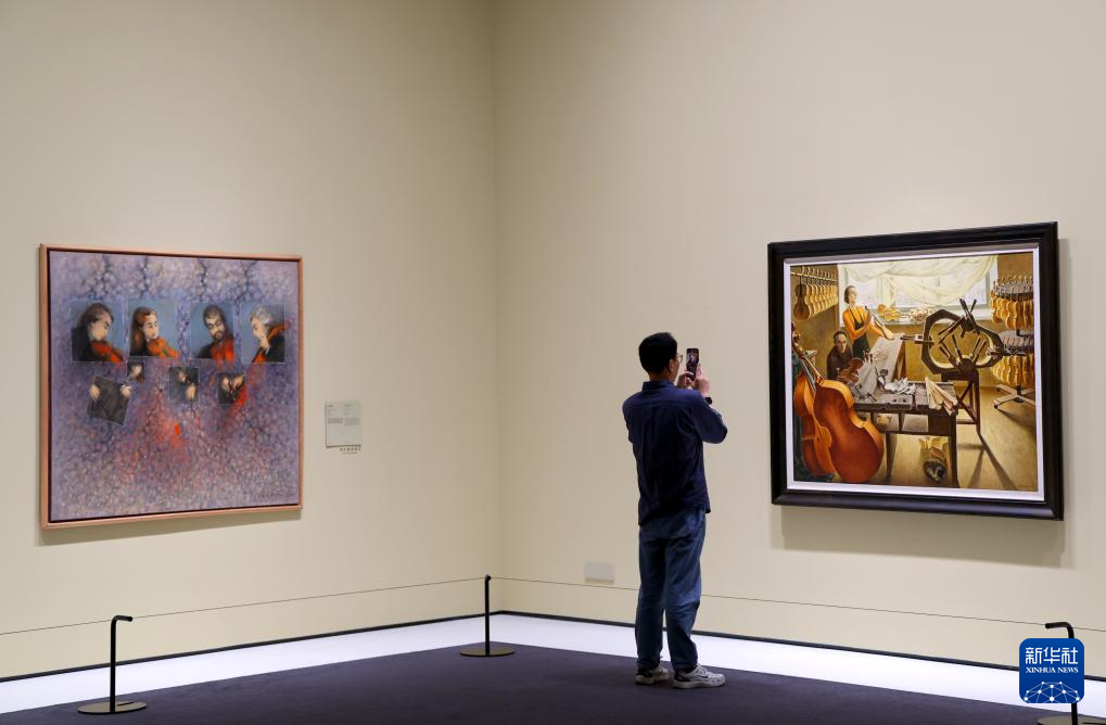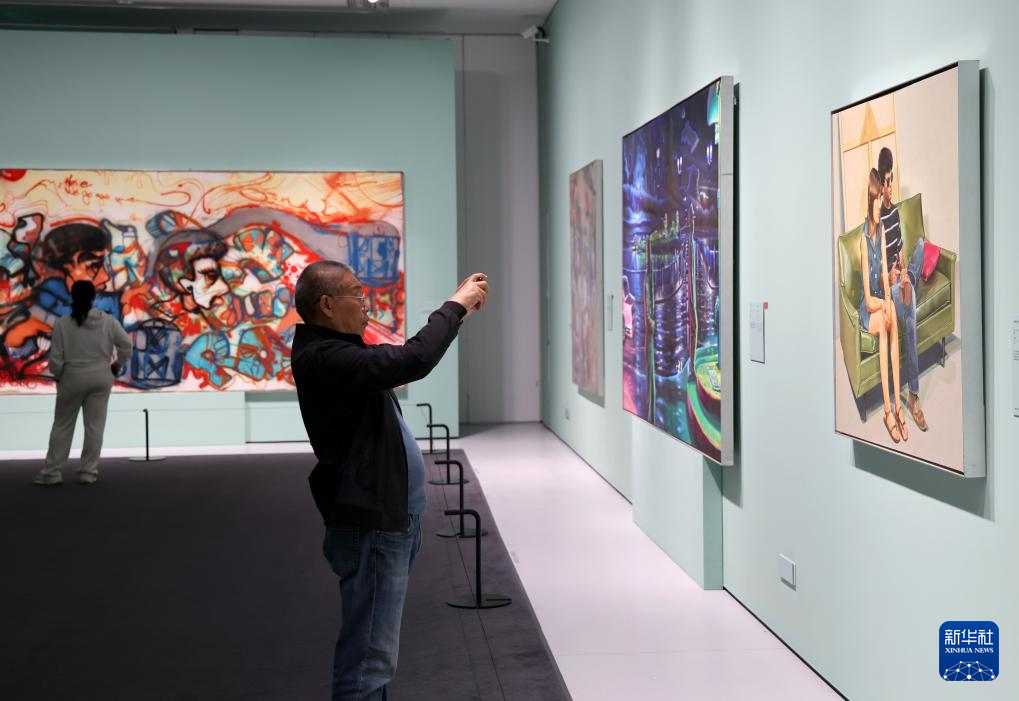 游客在广东美术馆欣赏画作(12月6日摄)。