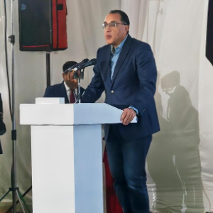 12月14日,在埃及南部阿斯旺省,埃及总理马德布利在康翁波光伏电站启动仪式上讲话。