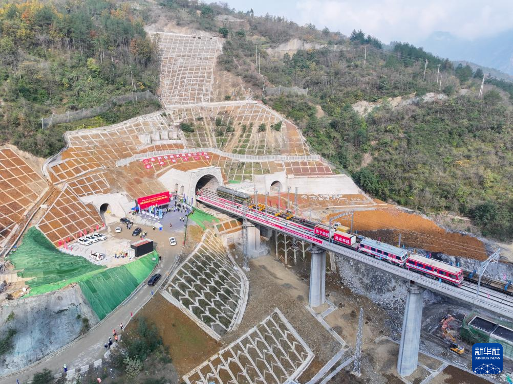 12月15日拍摄的渝厦高铁重庆东至黔江段武隆区白马山隧道出口施工现场。