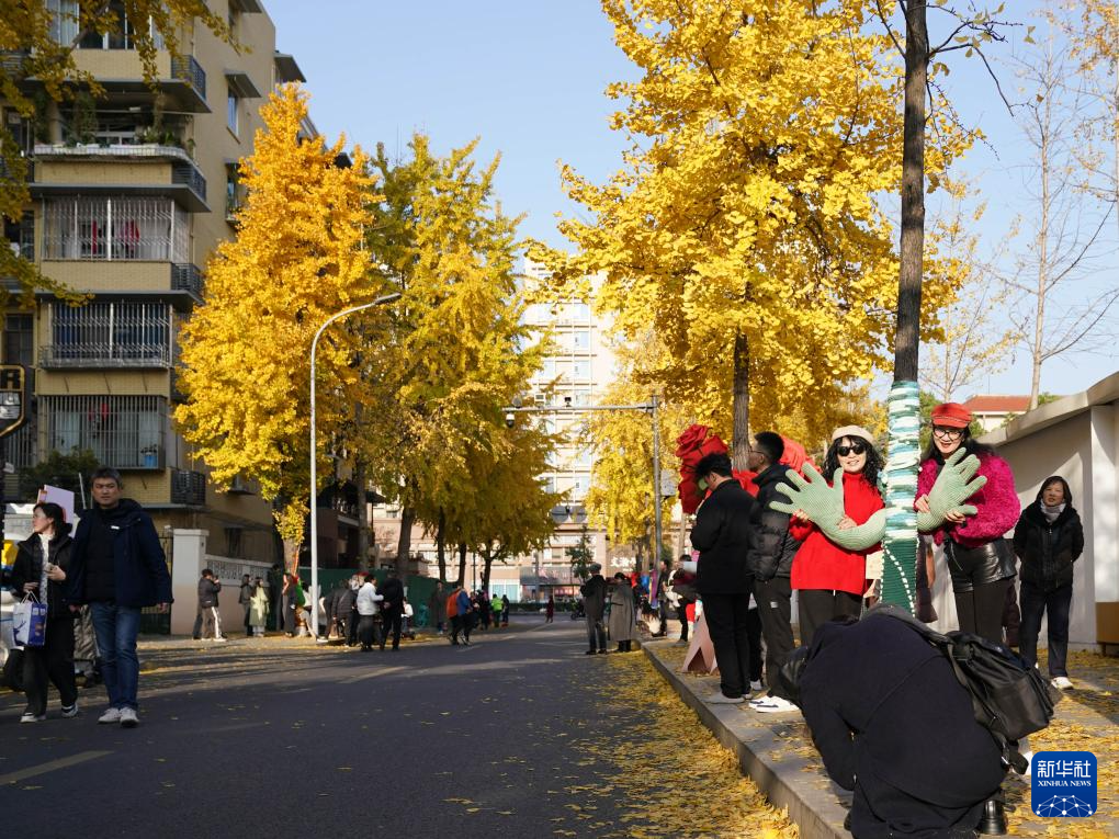 12月14日,市民在成都高新区兴蓉街银杏树下拍照。