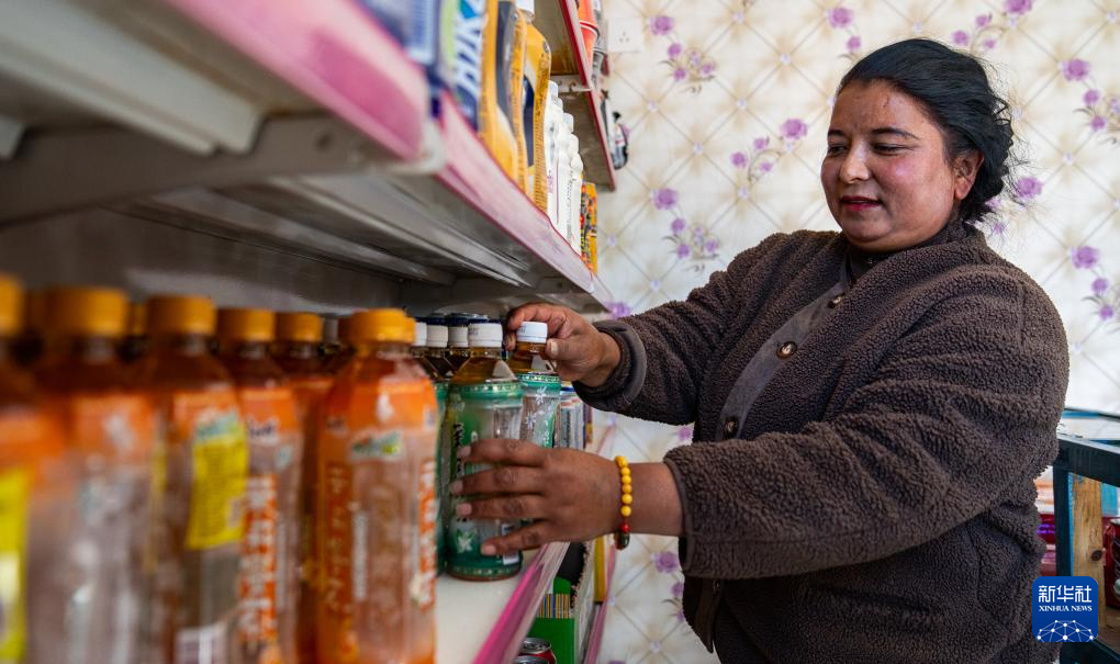 12月15日,一名达曼新村的妇女在自家商店里整理货架。