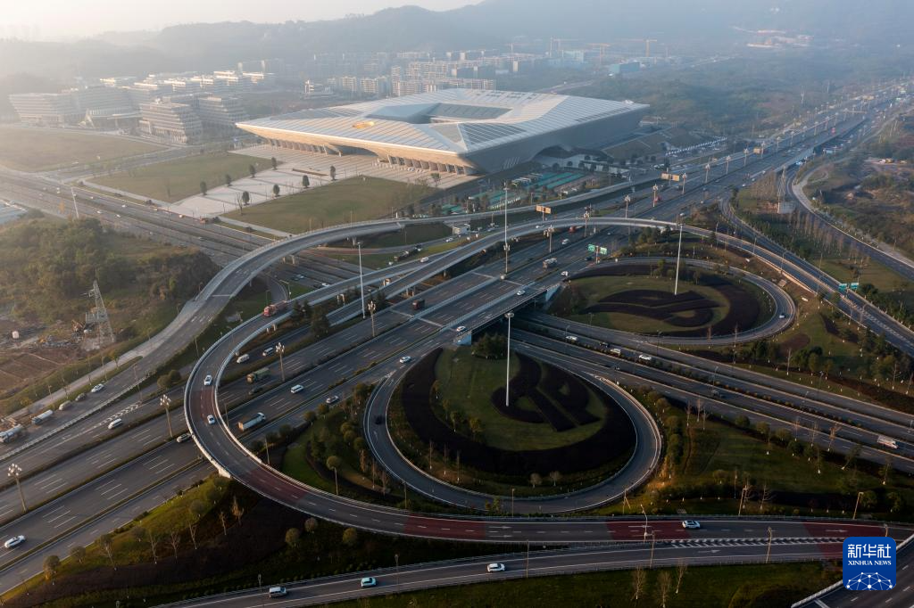 12月16日拍摄的西部(重庆)科学城“中国重庆·科学会堂”(无人机照片)。