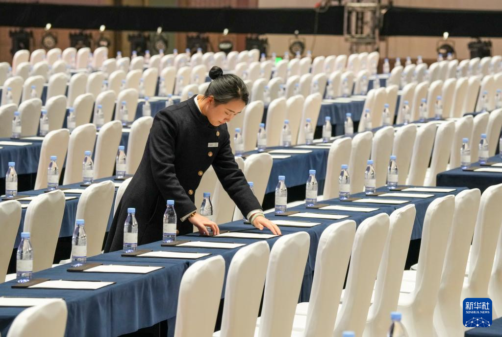 12月16日,在“中国重庆·科学会堂”会议厅内,工作人员检查会务准备工作。