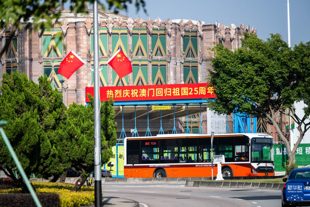 回归祖国25周年前夕,澳门街头装扮一新,洋溢着喜庆气氛。