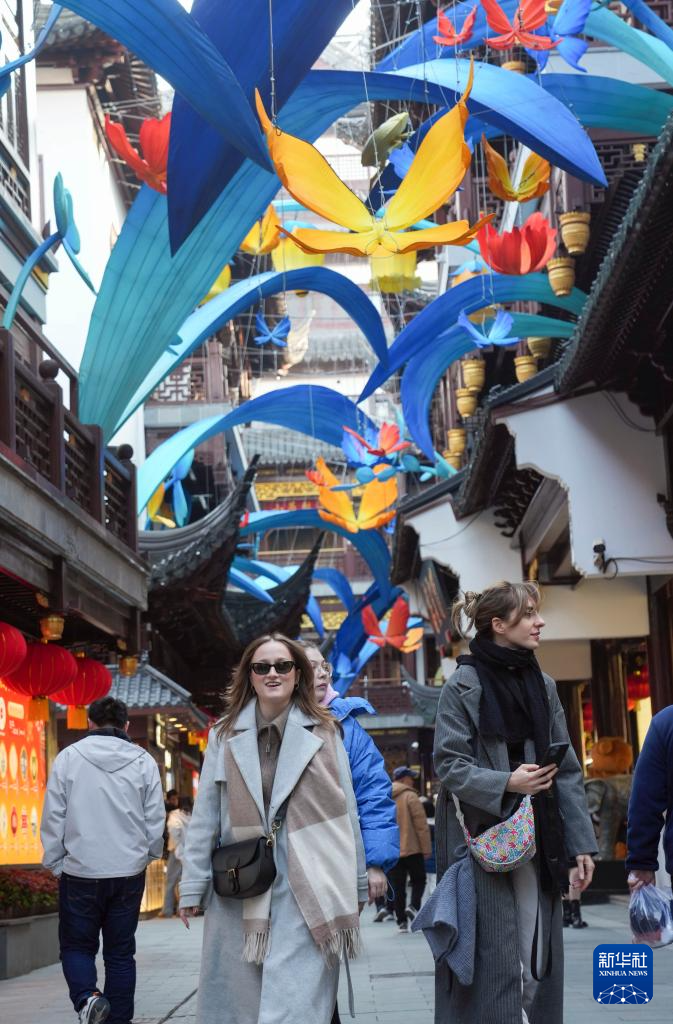 12月17日,游客在安装了灯组的上海豫园商城凝晖路游览。