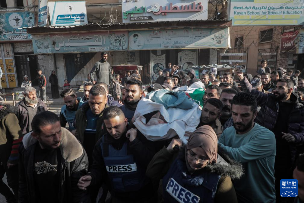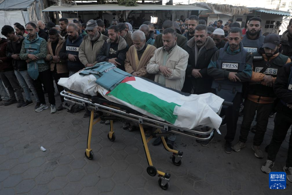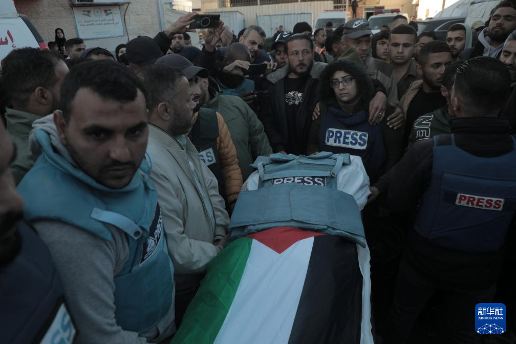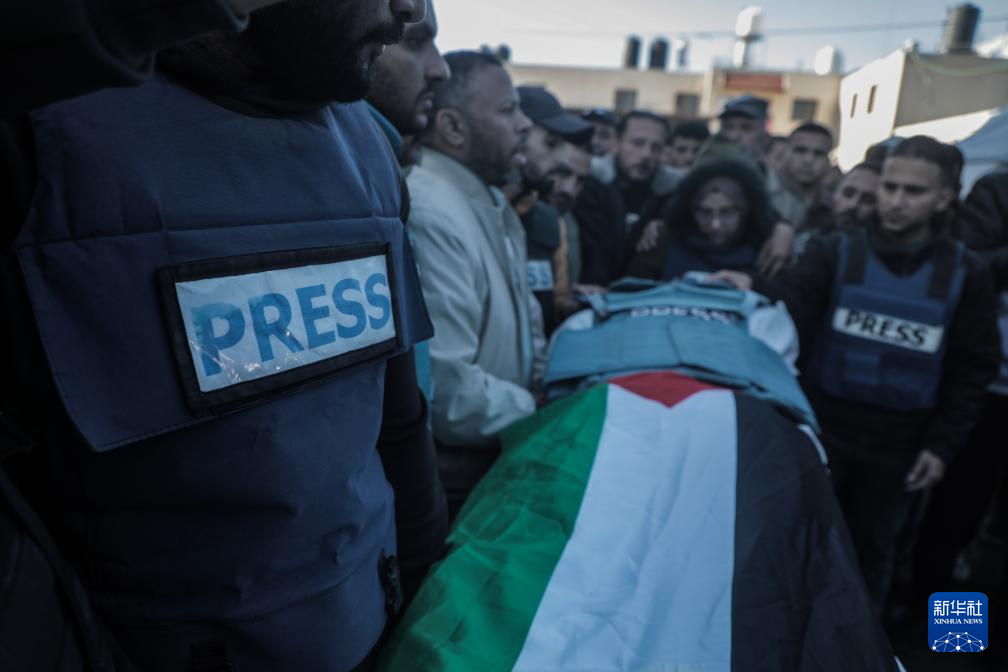 12月16日,人们在加沙地带中部城市代尔拜拉赫为遇难记者艾哈迈德·卢送葬。