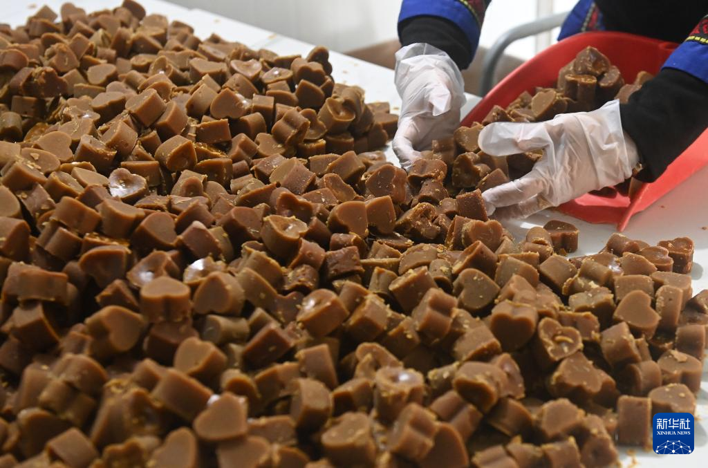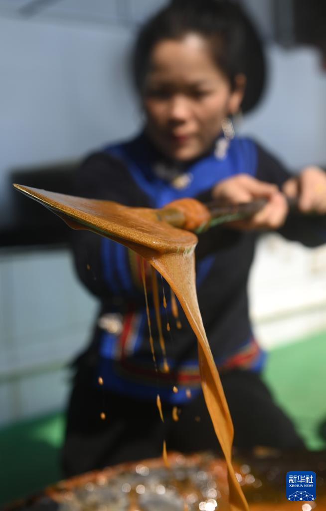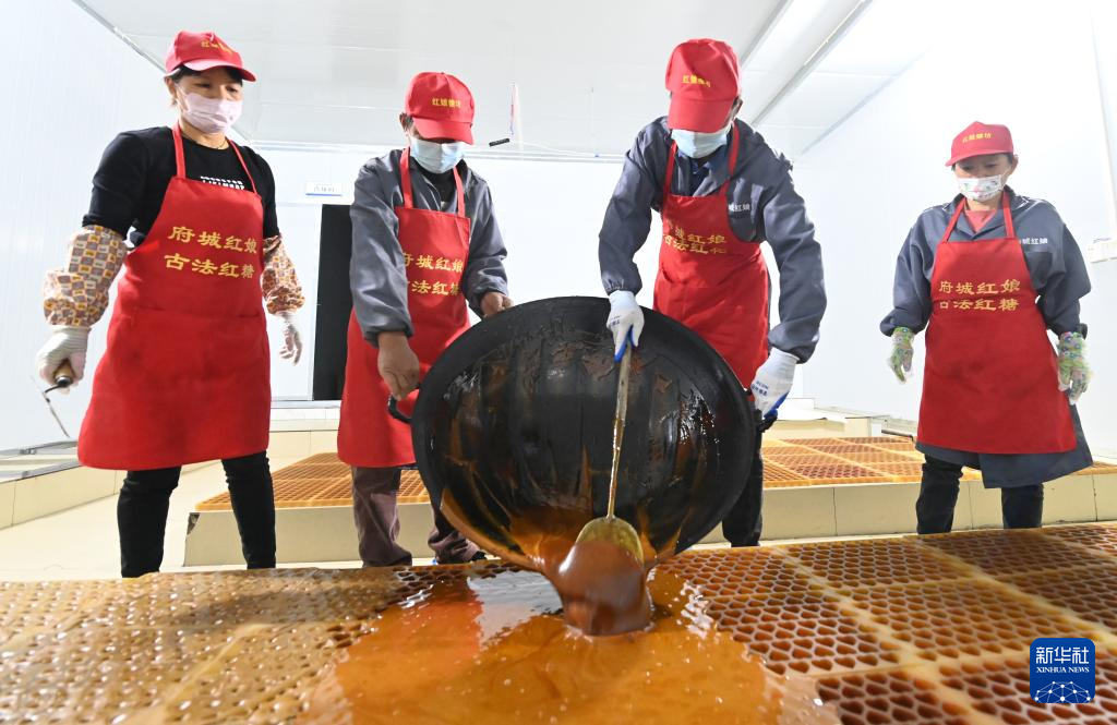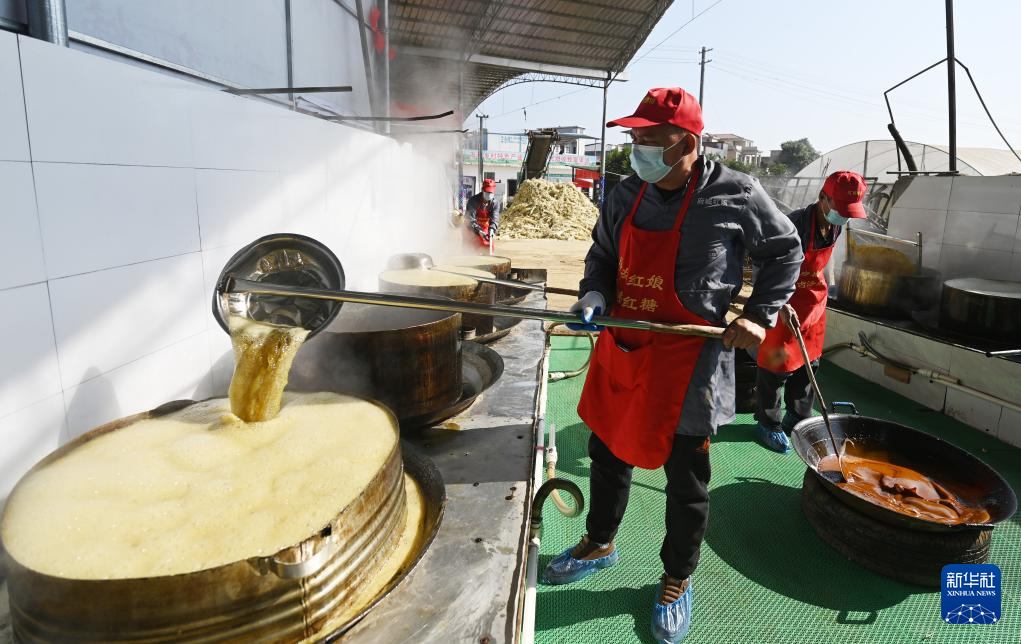 当日,广西南宁市武鸣区府城镇富良村定旺屯村民们加紧赶制红糖,供应即将到来的春节年货市场。