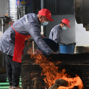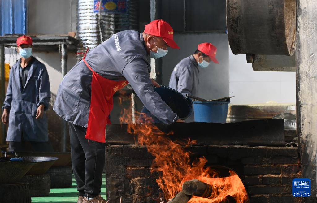 12月18日,在广西南宁市武鸣区府城镇富良村定旺屯,当地村民在熬制糖浆准备制作红糖。