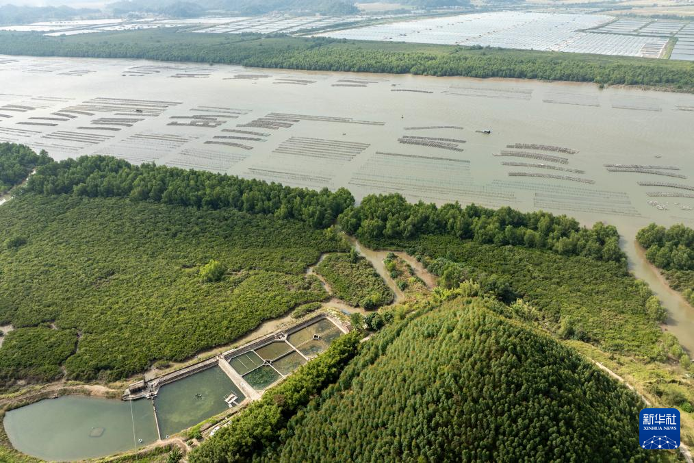 广东台山镇海湾红树林国家湿地公园有着粤港澳大湾区保存最完整、连片面积最大的原生红树林。近年来,广东省台山市依托镇海湾优越的资源禀赋,新营造红树林230公顷、修复38公顷,构筑30公里长的红树林景观带,与碧道、古村、温泉、台山蚝等相结合,建设集“红树林生态保育+生态养殖+生态旅游”等多功能综合发挥的万亩级红树林示范区。