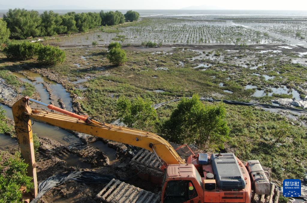 这是12月18日拍摄的广东台山市红树林保护与修复建设项目汶村段(无人机照片)。