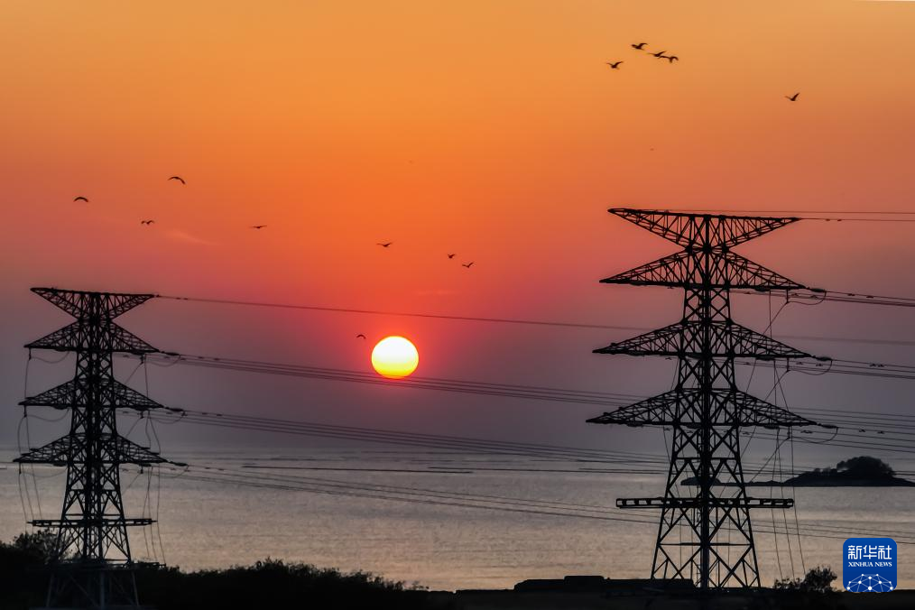 12月18日,鸟儿在广东台山海宴镇海侨湿地公园的红树林上空飞翔(无人机照片)。
