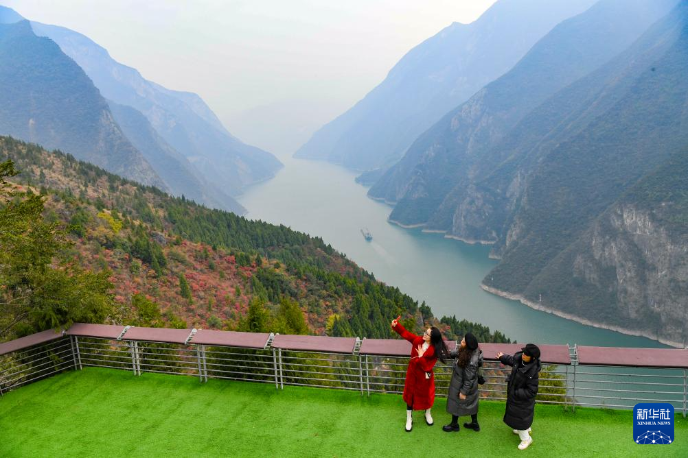 12月19日,游客在重庆奉节坳口观景点游览、拍照。